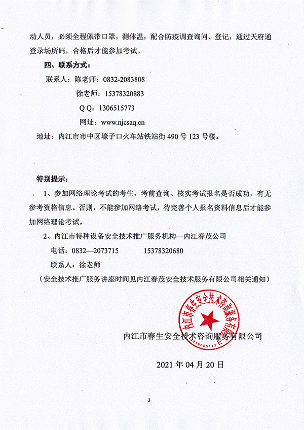 2021年春生公司03期特種設(shè)備作業(yè)人員考核時(shí)間安排