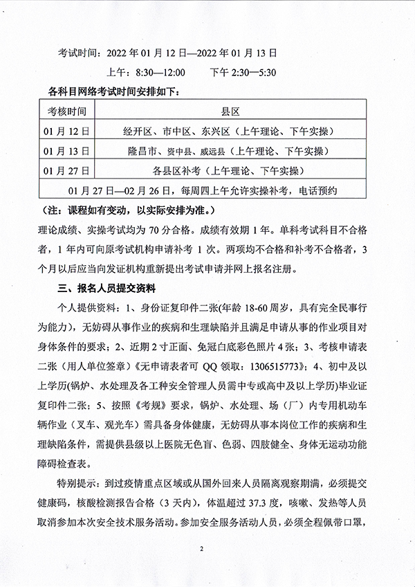 2022年春生公司01期特種設(shè)備作業(yè)人員考核時(shí)間安排
