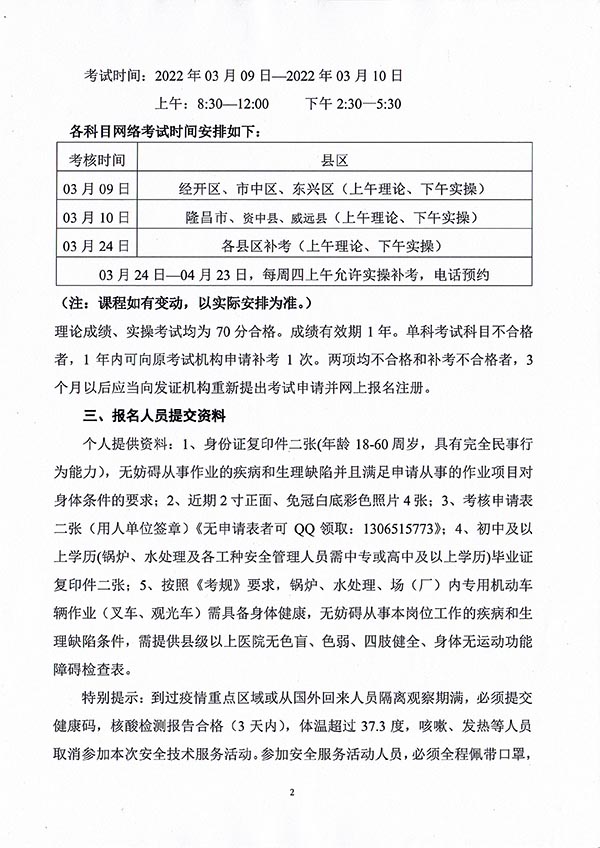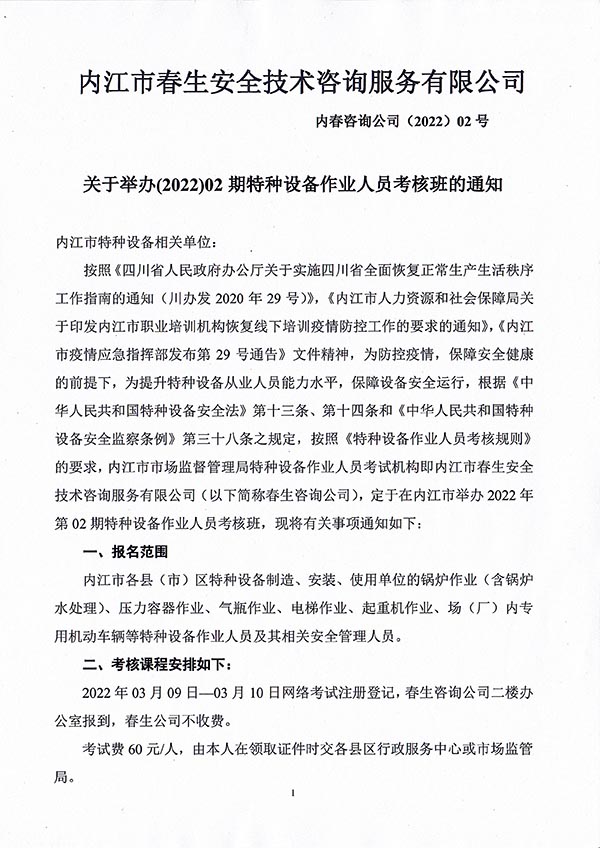 2022年春生公司02期特種設(shè)備作業(yè)人員考核時(shí)間安排