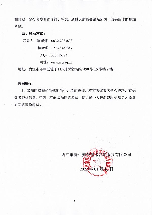 2022年春生公司03期特種設(shè)備作業(yè)人員考核時(shí)間安排