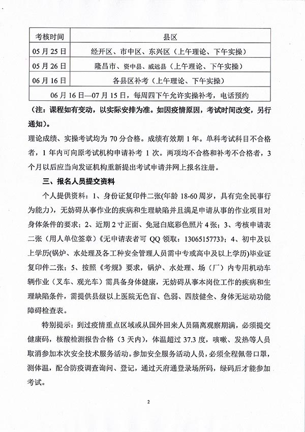 2022年春生公司06期特種設備作業(yè)人員考核時間安排