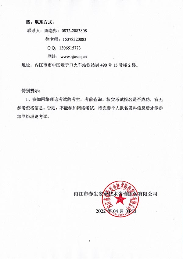 2022年春生公司04期特種設備作業(yè)人員考核時間安排