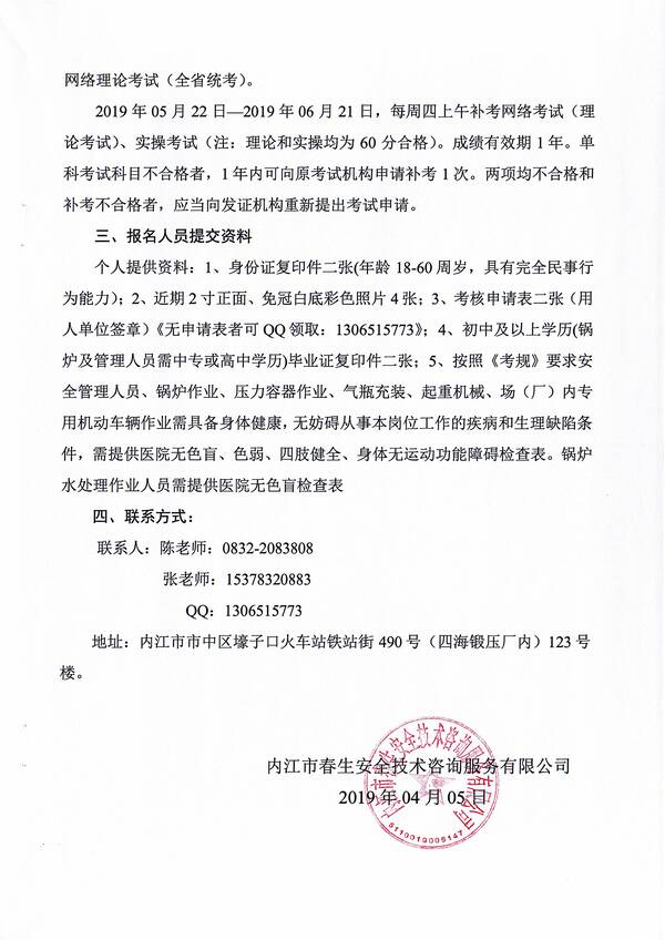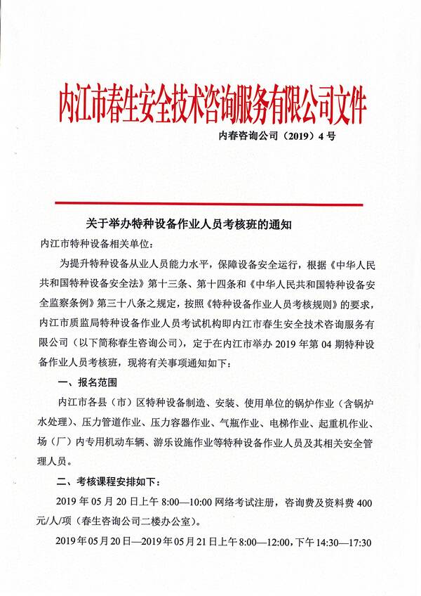 2019年第四期特種設(shè)備作業(yè)人員考核培訓(xùn)班的通知