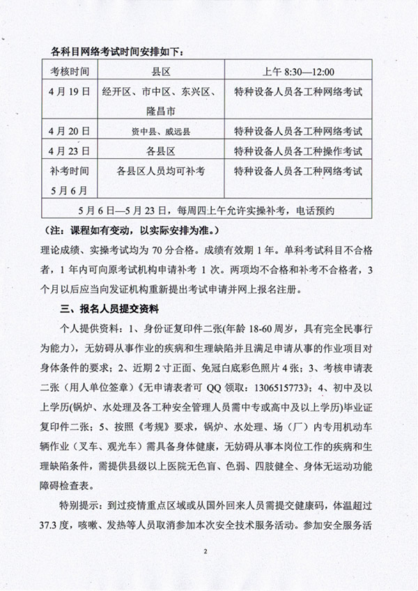 2021年春生公司03期特種設(shè)備作業(yè)人員考核時間安排